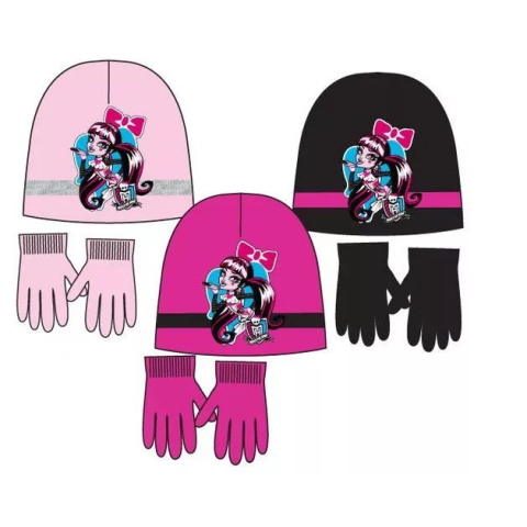 Stílusos Monster High sapka-kesztyű szett kislányoknak, élénk színekben és ikonikus karaktermintával. Kényelmes, puha anyag, amely tökéletes a hidegebb napokra, és vidám megjelenést biztosít. Ez a Monster High gyerek sapka és kesztyű szett kiváló választá