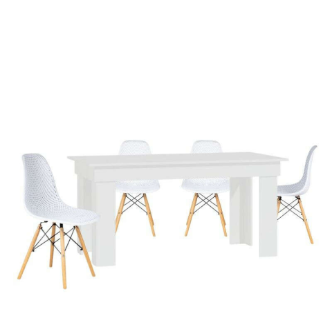 1 kép Montilla 4 személyes étkezőszett Nubia székekkel, Fehér - Fehér
