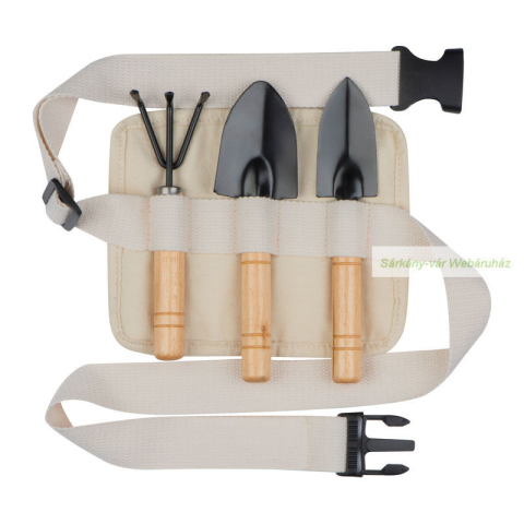 Praktikus kertészeti segítség! Pamut övvel, oldható csattal, gereblyével és 2 különböző méretű lapáttal. Méret: 17,5 × 14,5 × 2,5 cm Rendelésre: 5-10 nap! A dekoráció nem képezi az ajánlat részét! Emblémázási méret: 12 x 2 Emblémázási technológia: Di