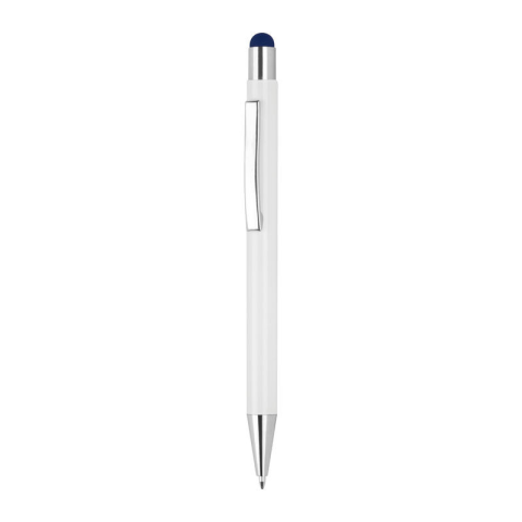 Alumínium golyóstoll ezüst színű kiegészítőkkel, érintő funkcióval és kék színű tollbetéttel