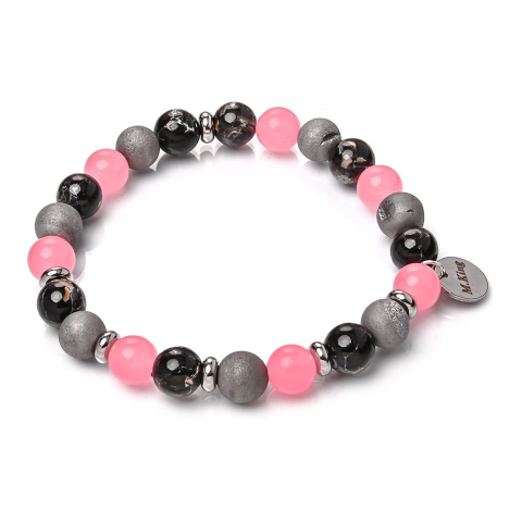 Moonwalker in Pink – DRUZY achát, jade és szintetikus kagyló ásvány karkötő dobozban
