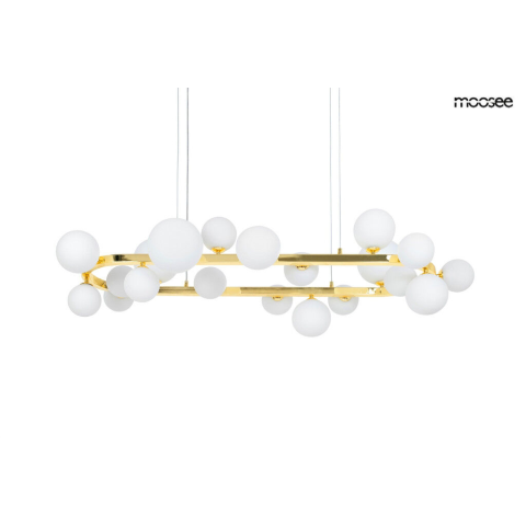 MOOSEE Alure Oval 120 Függőlámpa: Elegáns világítás otthonába ✨ Az Alure Oval 120 függőlámpa a modern elegancia és a kifinomult design tökéletes kombinációja. A 20 tejfehér gömbbúra és az arany váz luxus megjelenést kölcsönöz étkezőjének vagy nappali...