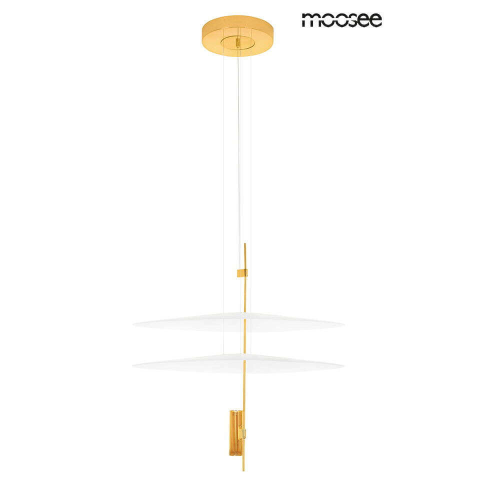 MOOSEE PARROT 68 arany függőlámpa: Stílusos és modern világítás a lakásodba ✨ Ez a gyönyörű függőlámpa feldobja otthonod modern stílusával és elegáns arany színével. Két ovális akril ernyőjének köszönhetően kellemes, szórt fényt biztosít, amely tökél...