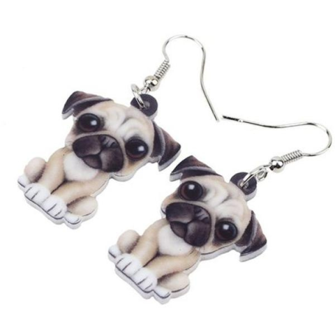 Mopszos fülbevaló akrilból, élethű mopsz ábrával. Tökéletes ajándék minden mopsz-rajongó számára, bármely alkalomra