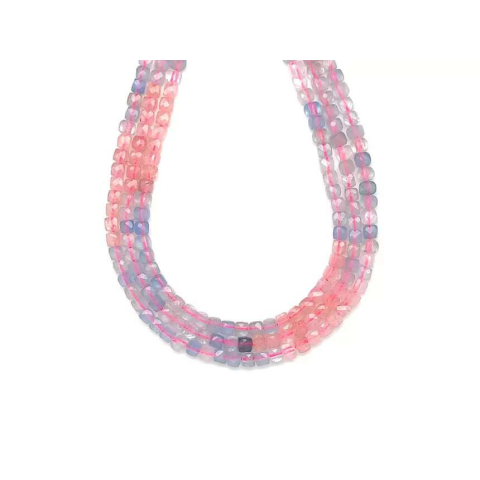 Morganit kocka gyöngyfűzér: 4-5x4-5 mm-es, fazettált morganit gyöngyökből készült elegáns ékszer Ez a gyönyörű morganit gyöngyfűzér 4-5x4-5 mm-es, fazettált morganit kockákból készült. A fazettálásnak köszönhetően a gyöngyök gyönyörűen csillognak és v...