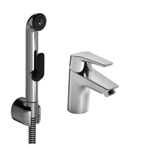 Karral állványos mosdó csaptelep bidé zuhannyal. Króm kivitelben. A csaptelep térfogatárama 6 liter / perc. A kar 7 cm magasan van.
