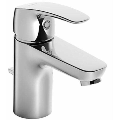 Karral állványos mosdó csaptelep leeresztőszeleppel. Króm kivitelben. A csaptelep térfogatárama 6 liter / perc. A kar 7,4 cm magasan van.