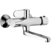 Termosztatikus fali mosdó csaptelep forgó karral. Króm kivitelben. A csaptelep térfogatárama 12 liter / perc. A csaptelepek távolsága 150 mm.