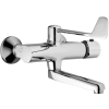 Termosztatikus fali mosdó csaptelep forgó karral. Króm kivitelben. A csaptelep térfogatárama 12 liter / perc. A csaptelepek távolsága 150 mm.