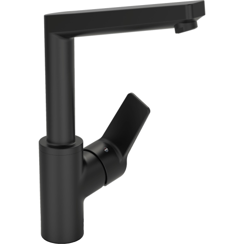 Karral állványos mosdó csaptelep leeresztőszelep nélkül. Fekete színben. A csaptelep térfogatárama 6 liter / perc. Matt felülettel.