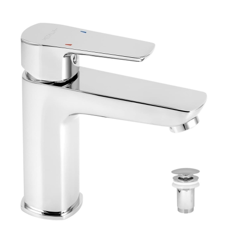 Karral állványos mosdó csaptelep leeresztőszeleppel. Króm kivitelben. A csaptelep térfogatárama 9 liter / perc.