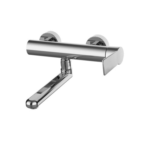Karral fali mosdó csaptelep Króm kivitelben. A csaptelepek távolsága 150 mm. A kar 26,3 cm magasan van.