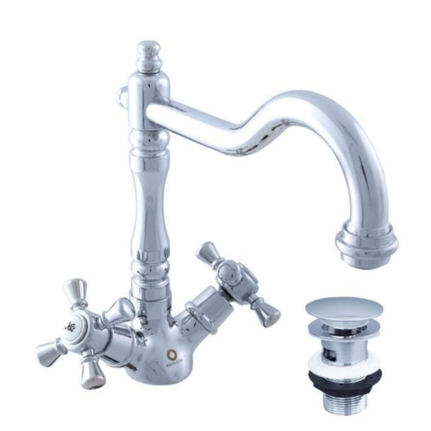 Csappal állványos mosdó csaptelep clic-clac rendszerrel. Króm kivitelben.