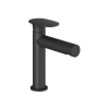 Karral álló mosdó csaptelep kiömlőnyílás nélkül fekete színkivitelben A csaptelep térfogatárama 4,5 liter / perc. A csaptelep magassága 18,9 cm. A kar 12,4 cm magasan van. Matt felülettel