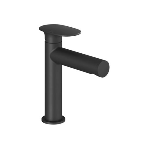 Karral álló mosdó csaptelep kiömlőnyílás nélkül fekete színkivitelben A csaptelep térfogatárama 4,5 liter / perc. A csaptelep magassága 18,9 cm. A kar 12,4 cm magasan van. Matt felülettel