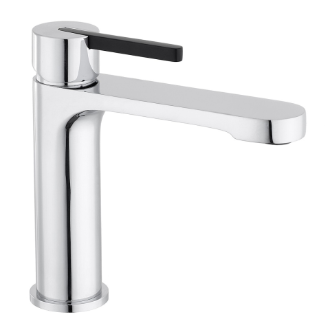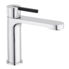 Fali mosdókagyló-keverő króm és fekete kombinációban. Kar kialakítása. A lefolyó nem tartozék. Áramlási sebesség 4,5 l/min. A csatlakozó tömlők hossza 40 cm. A keverő magassága 16 cm, a fogantyú magassága 11,8 cm, a fogantyú hossza 13,2 cm.