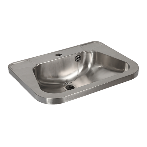 1 kép Mosdó Sanela 56x42 cm rozsdamentes acélból matt felülettel középső nyílással SLUN26