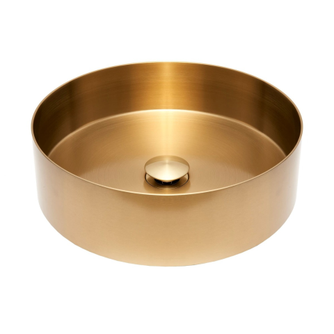 A megfelelő mosdókagyló életet lehel fürdőszobájába, és kiemeli annak stílusát, mint például az Infinitio pultra szerelhető, túlfolyó nélküli mosdókagyló. A medence szélessége 38 cm, mélysége 38 cm, magassága 11 cm. Arany színű, kerek formájú.