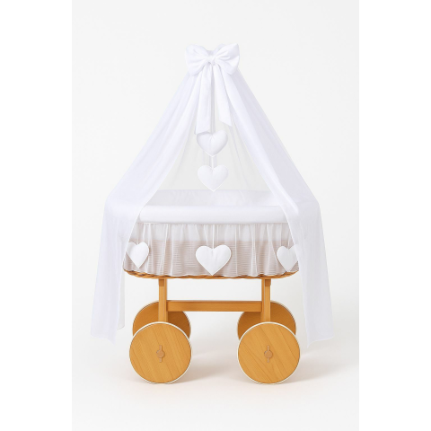 1 kép Moses Basket fonott függönyös kiságy Deluxe Amelie - natúr + fehér ágyneműhuzat