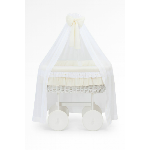 1 kép Moses Basket fonott függönyös kiságy Deluxe Bellamy - fehér + krémszínű ágynemű