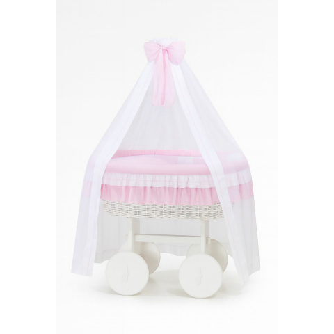 1 kép Moses Basket fonott függönyös kiságy Deluxe Bellamy - fehér + rózsaszín ágyneműhuzat