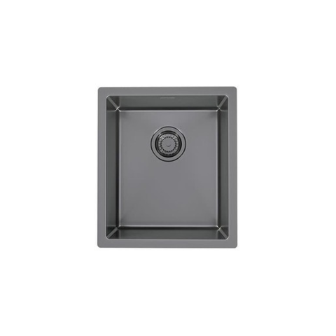 Rozsdamentes acél mosogató, lemezvastagság 1 mm, PVD antracit kivitel, méret 390 x 450 mm, medence 340 x 400 x 200 mm, F/S/U szerelés, legalább 40 cm-es szekrény.
