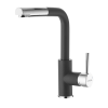 Karral állványos mosogató csaptelep kihúzható zuhannyal. Antracit színben. A kar 26,8 cm magasan van. Matt felülettel.