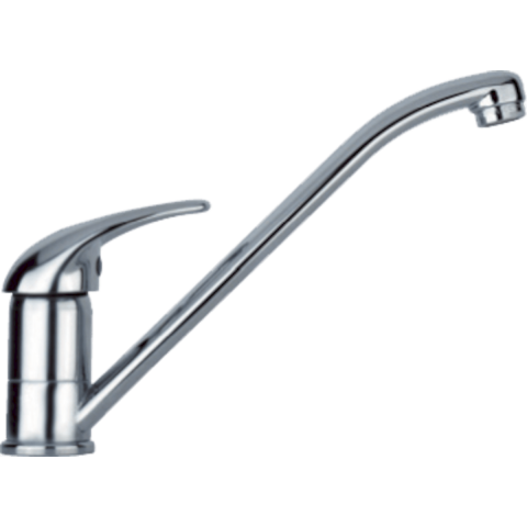 Karral állványos mosogató csaptelep forgó karral. Kerekített kivitelben. Króm kivitelben. A kar 15 cm magasan van.
