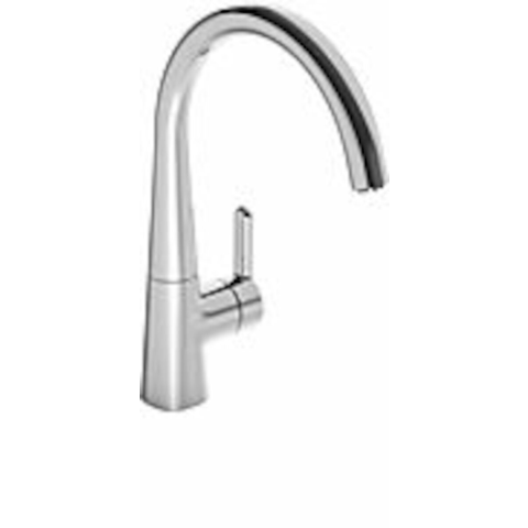 Karral álló mosogató csaptelep elforgatható kifolyóval króm színkivitelben. A csaptelep térfogatárama 12 liter / perc. A csaptelep magassága 34,8 cm. A kar 23,9 cm magasan van. Fényes.