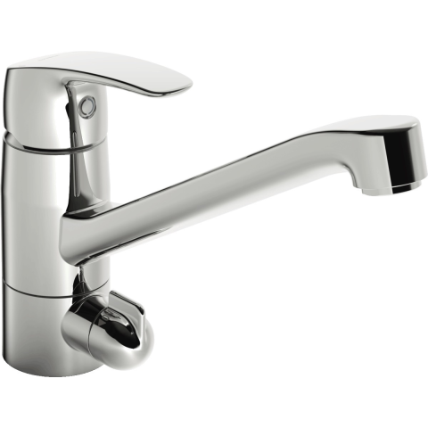 Karral állványos mosogató csaptelep forgó karral. Króm kivitelben. A csaptelep térfogatárama 12 liter / perc.
