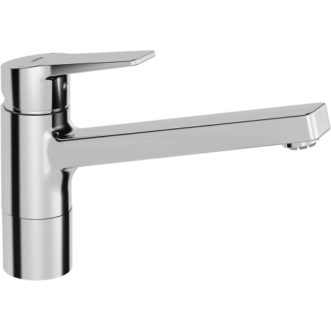 Karos, alacsony nyomású mosogatócsaptelep nyomásmentes vízmelegítőkhöz, forgatható karkkal. Króm kivitelben. A csaptelep magassága 17,2 cm. A kar magassága 12,9 cm.