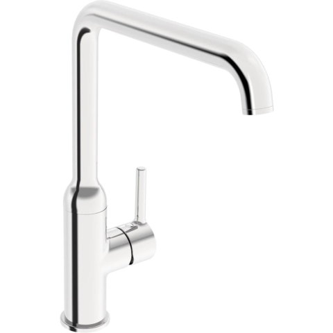 Karral álló mosogató csaptelep elforgatható kifolyóval króm színkivitelben. A csaptelep térfogatárama 10,2 liter / perc. A csaptelep magassága 33 cm. A kar 28,1 cm magasan van. Fényes.