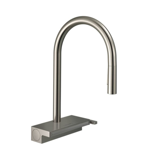1 kép Mosogató csaptelep Hansgrohe Aquno kihúzható zuhanyzóval, 3 vízfolyással rozsdamentes acél megjelenés 73831800