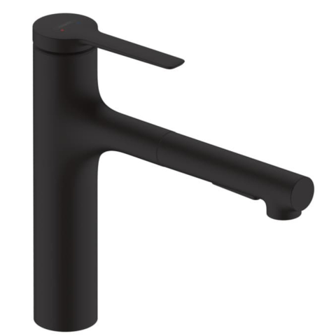 1 kép Mosogató csaptelep Hansgrohe Zesis kihúzható zuhannyal, 2 áram fekete matt 74804670