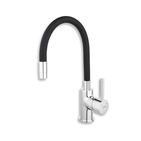 Karral állványos mosogató csaptelep szilikon karral. Fekete színben krómmal kombinálva.