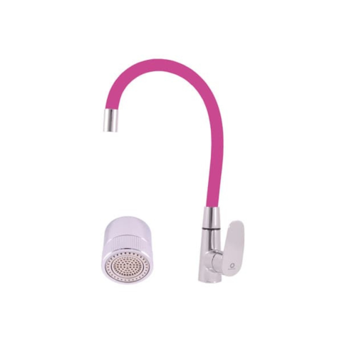 Karral állványos mosogató csaptelep szilikon karral. rózsaszín/króm színkivitelben.