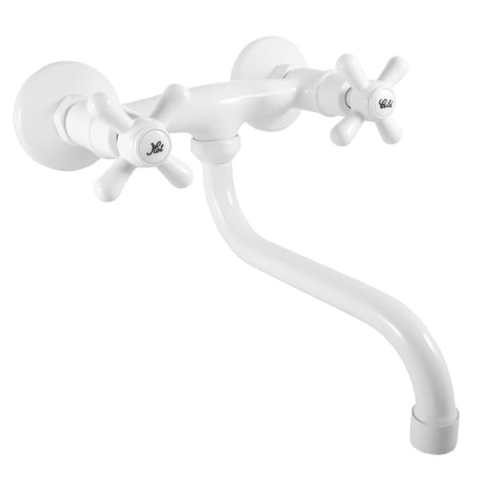 Csappal fali mosogató csaptelep Fehér színben. A csaptelepek távolsága 150 mm.