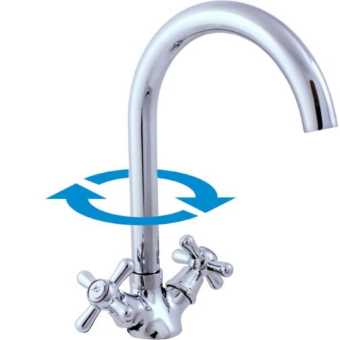 Csappal állványos mosogató csaptelep forgó karral. Króm kivitelben.