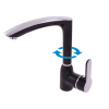 Karral állványos mosogató csaptelep forgó karral. Fekete színben krómmal kombinálva.