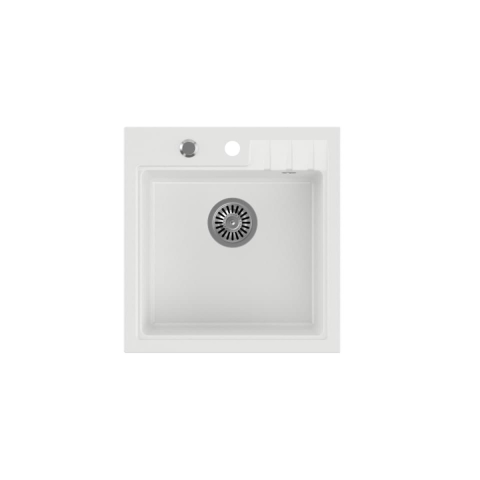 50x52 cm méretű, 20 cm mélységű fehér gránit egyszemélyes mosogató, munkalapra szerelhető. 50 cm szélességű szekrénybe szerelhető.A mosogató fogantyúi nem részei a csomagnak. A mosogató fogantyúi nem tartoznak a csomagba.