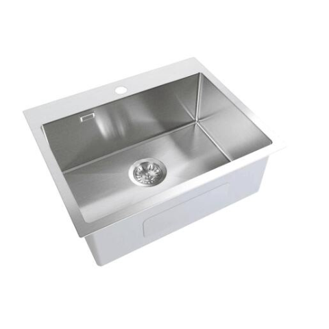 Rozsdamentes egyszemélyes mosogató rozsdamentes acélból, 55x45 cm méretű és 21 cm mély munkalapra szerelhető.