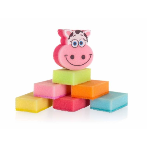 Állat formájú mosogatószivacs készlet. A 8,5 x 5,5 x 2,8 cm-es szivacsok különböző színben 6 darabos készletben kerülnek szállításra + 1 db 9 x 8,5 3,5 cm-es állat formájú szivacs, az otthoni apró kisegítőknek szánva.