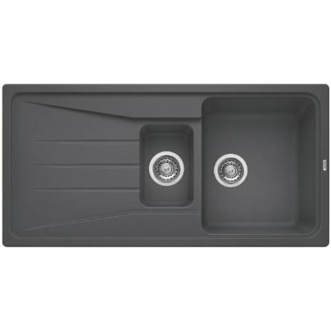 Gránit egymedencés mosogató sziklaszürke színű lecsepegtetővel, 100x50 cm méretű és 19 cm mély munkalapra szerelhető. 60 cm széles szekrénybe szerelhető.