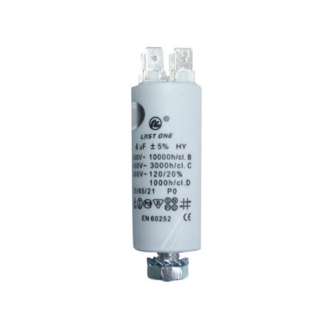 Mosógép indítókondenzátor Kapacitás: 4,0µF. Méret: Ø25x57mm. 450Vac.