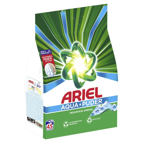Mosópor 2,475 kg (45 mosás) fehér ruhákhoz Ariel Mountain Spring tisztító- és takarítószer, higiénia termékleírás