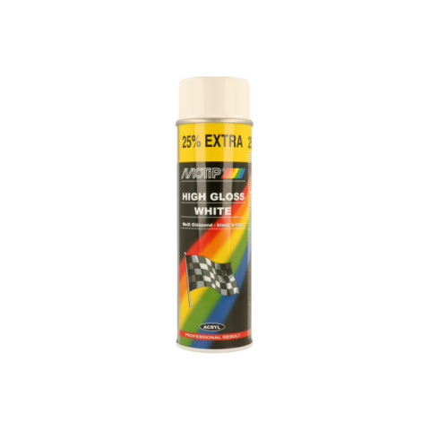 Fehér magasfényű spray festék 500mlMagas minőségű dekoratív lakkok szinte minden felülethez. Széles színválasztékban elérhető.A jobb kezelhetőség érdekében javasoljuk, hogy rendeléséhez adja hozzá a Motip Spraymaster-t.Spray FestékekBár spray festékeink t