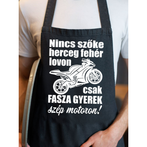 Motoros kötény, nincs szőke herceg. Nincs szőke herceg fehér lovon csak fasza gyerek szép motoron kötény népszerű motoros mintáink egyikével, ami minden motoros férfinak és nőnek tökéletes ajándék születésnapra. Egyedi mintával ellátott kötényünk prakt