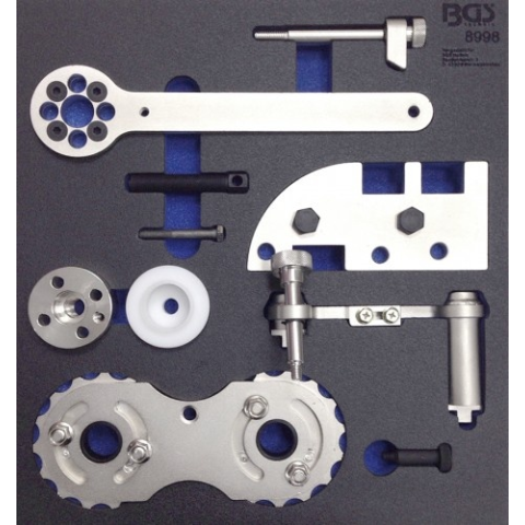 Motorvezérlés ellenőrzéséhez és beállításához, pl. a hengerfej tömítés cseréjekor, vagy a szelepvezérlésen végzett munkák után, stb.;2/3-os szerszámtálcában.Kompatibilitás:Volvo B4204 motorokhoz (8 sebességes váltóval)A készlet tartalma:Ellentartó sze