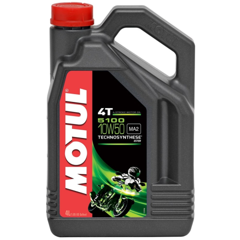 Motul 5100 4T SAE Technoszintetikus 10W-50 motorolaj 4L, hagyományos nagyteljesítményű motorok mindennapos használatára. Speciális viszkozitási fok, nehéz körülmények mellett üzemelő motorokhoz. A 10-es érték a hideg indítás során jelentős kopásvédel