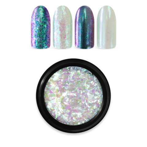 Gyönyörű színekben irizáló, kifejezetten könnyed, pehely állagú díszítő por. Keverhető fényzselébe, zselébe és porcelánba egyaránt